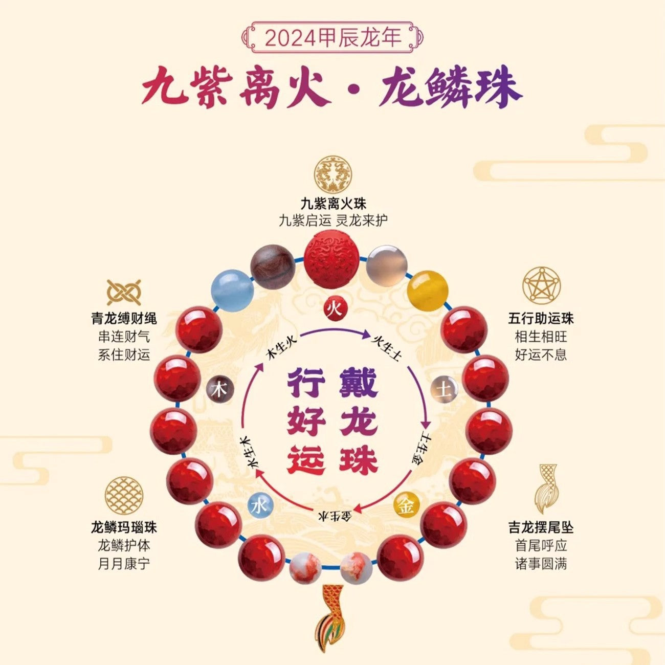 九紫離火龍靈珠手串:活力與繁榮的象徵