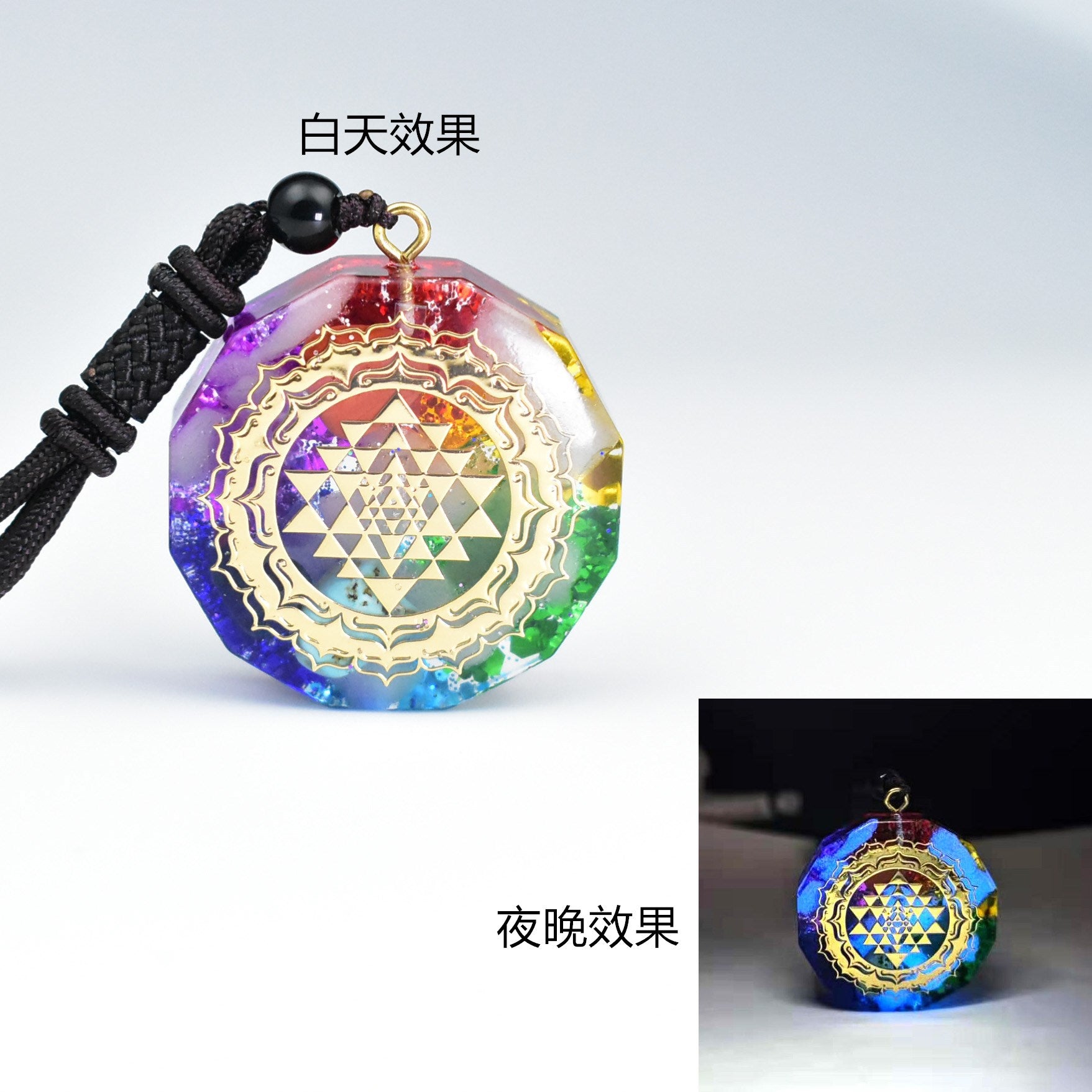 There are two variations of this pendant: the **glow-in-the-dark version** and the **standard version**. In daylight, the regular version's conventional resin displays the crystals' vivid colors and inherent clarity. On the other hand, the **glow-in-the-dark version** provides a magical effect by absorbing sunlight during the day and emitting a gentle, captivating glow at night. Both versions have distinctive visual appeal, so you can select the one that best suits your tastes and style.