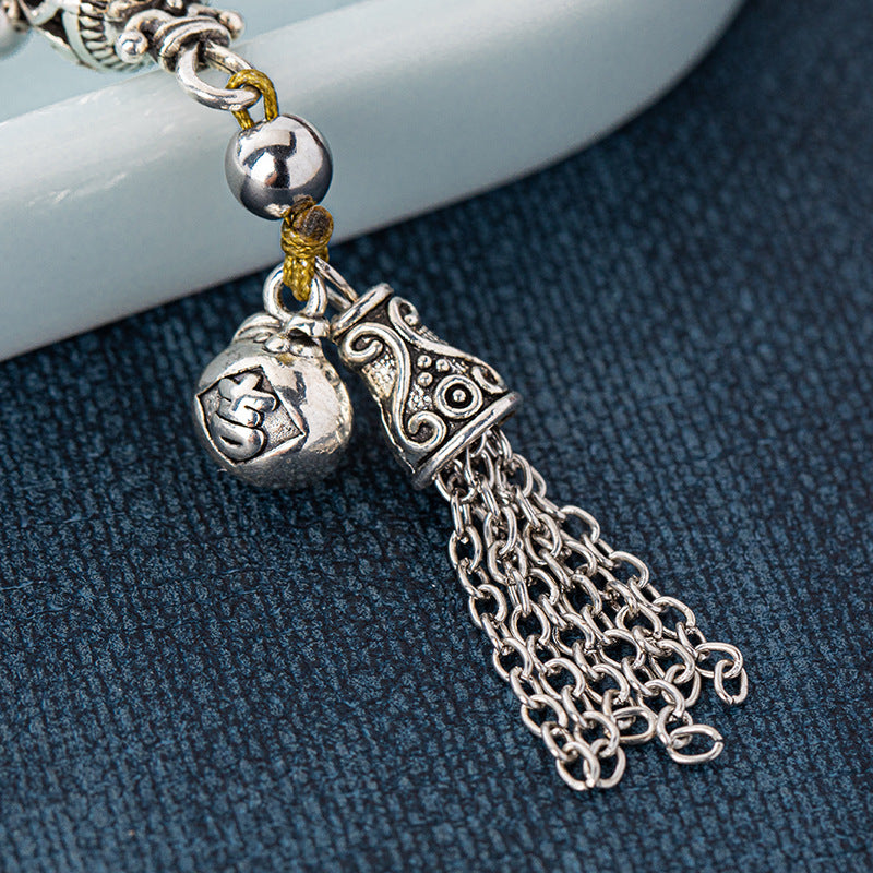 The design of the bracelet highlights balance and symmetry. Its tassel, which is made from premium flexible silk strands, adds a touch of refinement, and the Tibetan silver accents give it a timeless charm. It is appropriate for everyday wear, business events, and meditation sessions because it blends in well with both men's and women's clothes and shines out in formal settings.