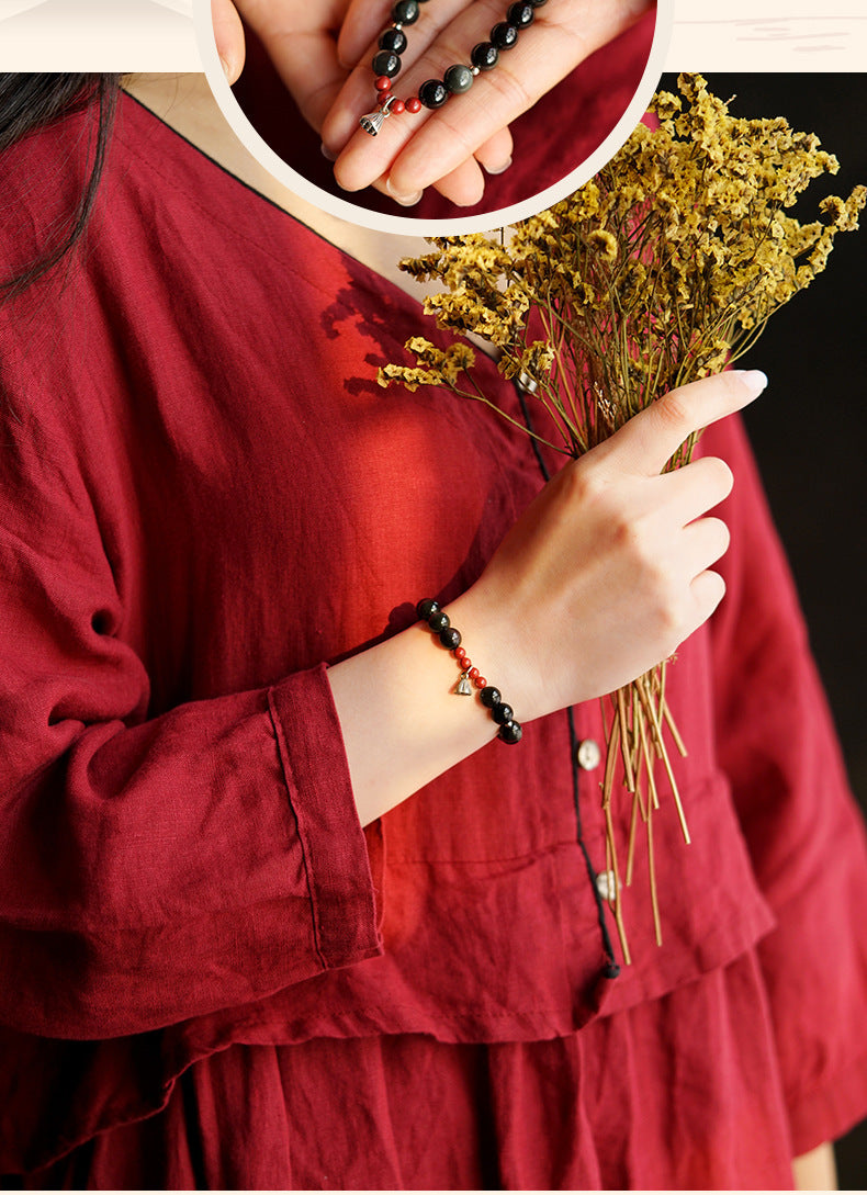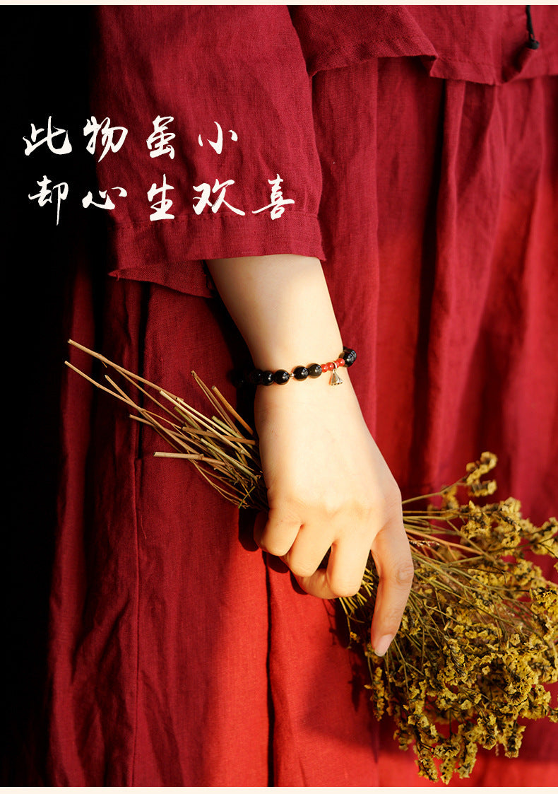 The bracelet's creator has carefully incorporated **cinnabar** motifs to deepen its meaning. Ancient amulets frequently contained cinnabar, which has long been seen to be a soothing and protective substance. In addition to adding to the bracelet's beauty, this little cinnabar bead gives it additional magical power that helps the wearer reduce worry, drive out bad energy, and support mental and emotional stability.