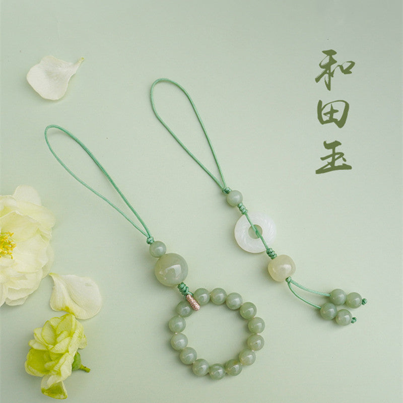 Natural Qing Shui Hetian Jade 6mm Phone Charm, Jade Pendant, Peace Buckle Hanging Ornament, Car Keychain, Chinese Style