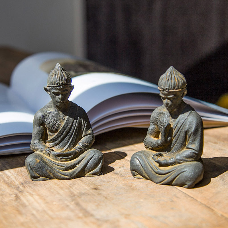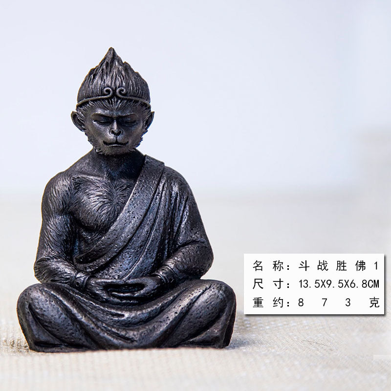 Neo-Chinese warrior Buddha Sun Wukong Monkey desktop iron ornament, home accent, and nourishing tea pet with a Zen-inspired design