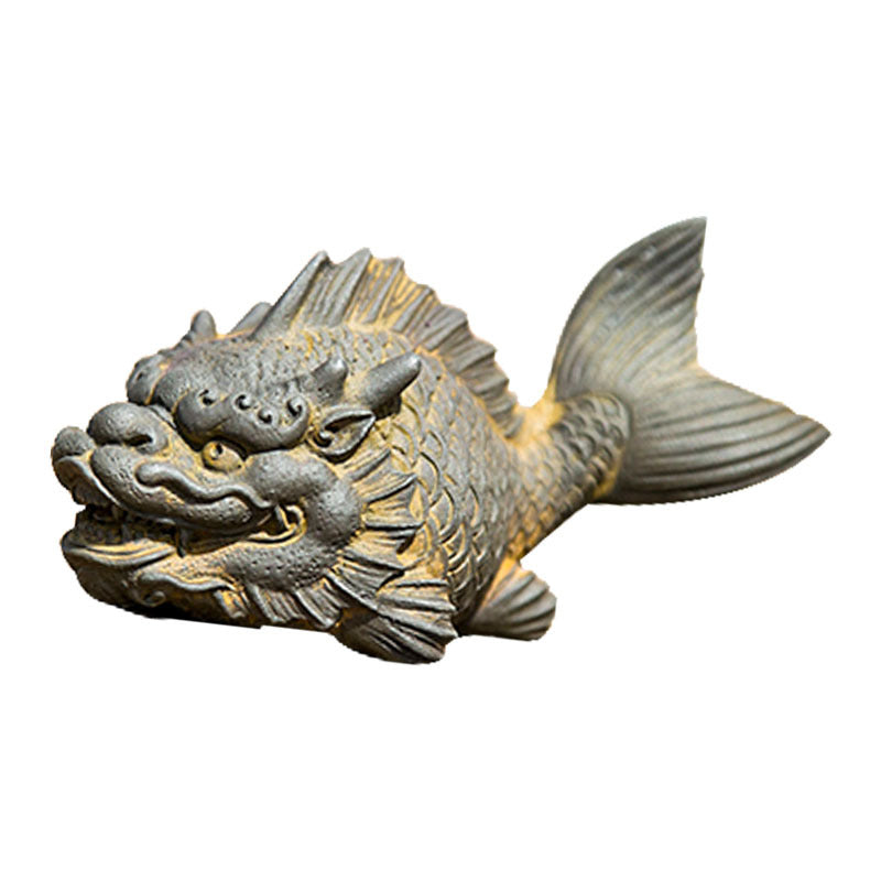 龍魚在中華文化中象徵財富、繁榮與吉祥,據說能帶來好運並驅邪避災。這款擺件不僅是一件裝飾品,更是一種寄託美好祝福的文化符號。擺放於書房案頭,可激發創意與專注力;作為茶寵置於茶桌,能為茶席增添靈動的禪意氛圍;陳列於客廳或玄關,不僅成為空間的焦點,還能提升家庭和諧與福氣。不論擺放於何處,這款龍魚擺件都以其獨特的設計與文化意涵,為空間帶來別緻的魅力與吉祥寓意,是任何環境的高雅之選。