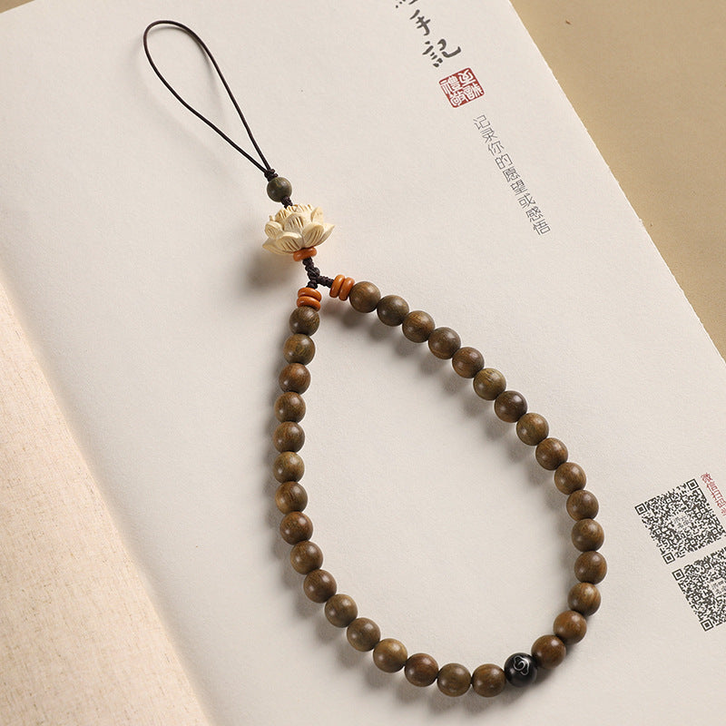 Sandalwood Phone Pendant - Boxwood Lotus, Green Sandalwood, and Rosewood Short Phone Chain Accessory